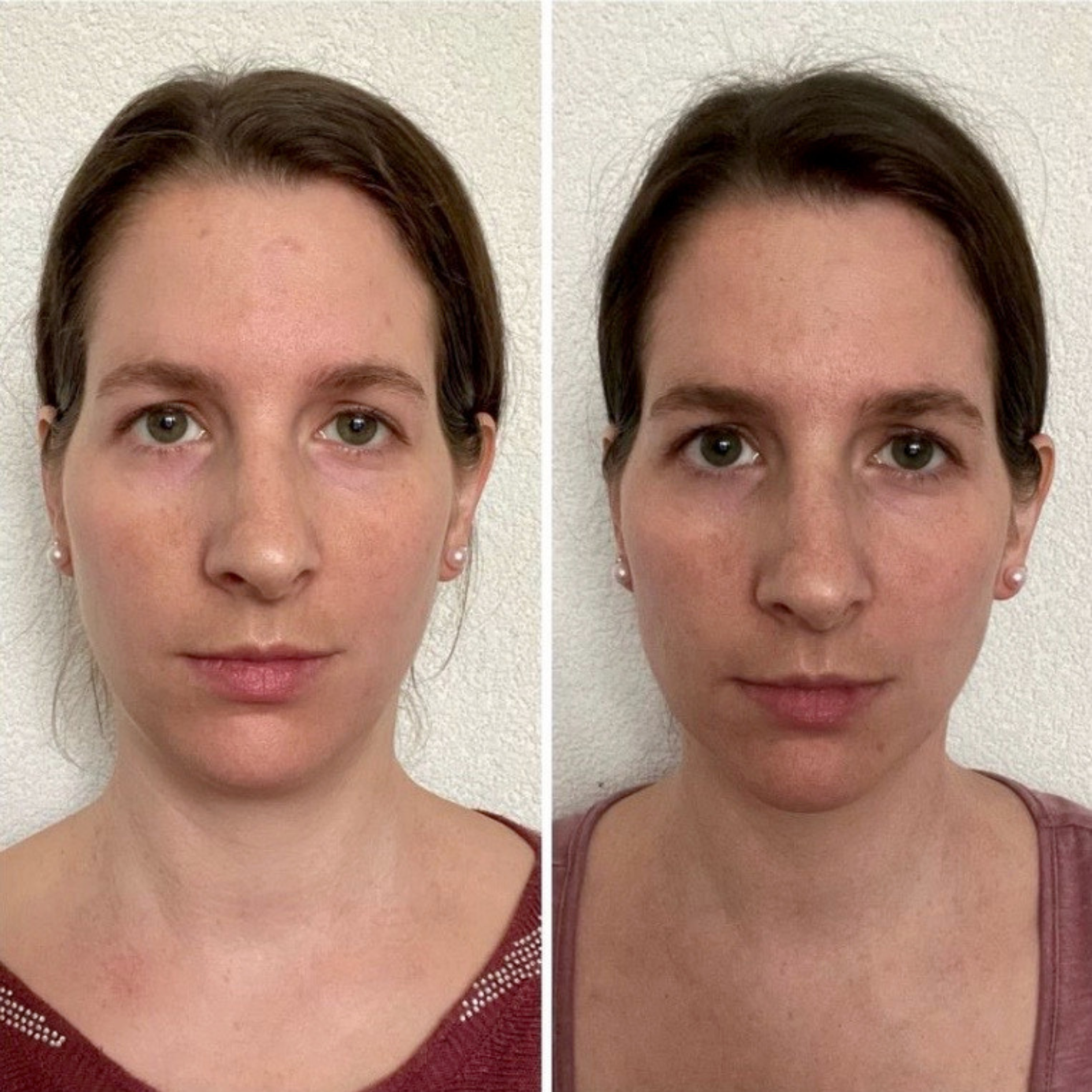 Ich habe ganz unkompliziert mit einem Gua Sha Workshop bei Claudia begonnen. Dann habe ich ein 1:1 bei ihr gebucht und im Anschluss noch den Gesichtyoga Intensivkurs gebucht. Faceyoga, Gua Sha oder Schröpfen gehören für mich inzwischen zu einer schönen abendlichen Routine dazu. Kieferschmerzen reduziert, Gesicht wirkt symmetrischer und entspannter.