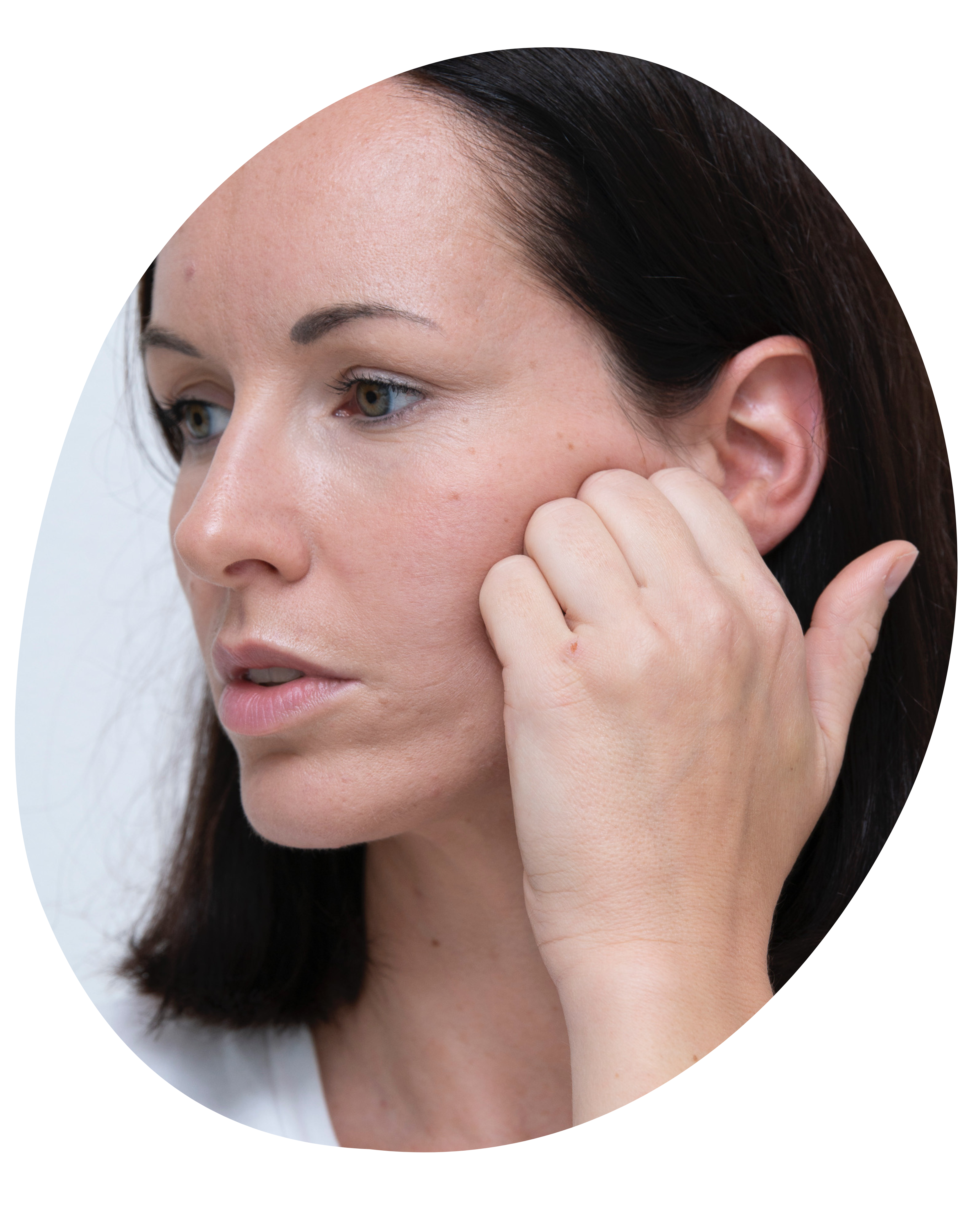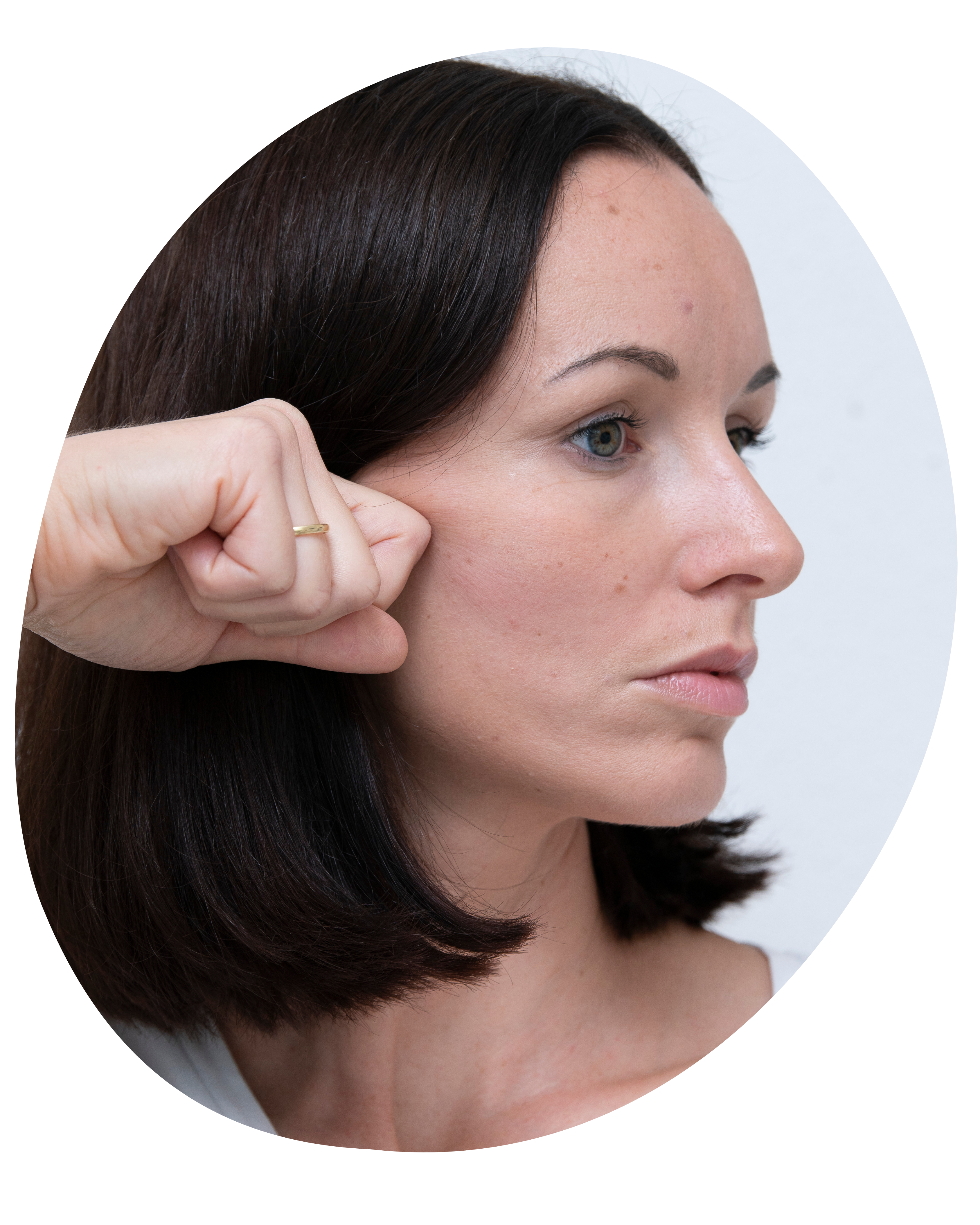Hohe, definierte Wangenknochen und eine Wangenpartie, die geliftet und angehoben ist. Das erreichst Du mit den Übungen dieses Moduls. Außerdem lernst Du wie Du die Nasenspitze sanft anheben kannst und Hängebäckchen straffst.